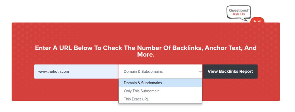 Enter domain name that you would like to check for existing backlinks.